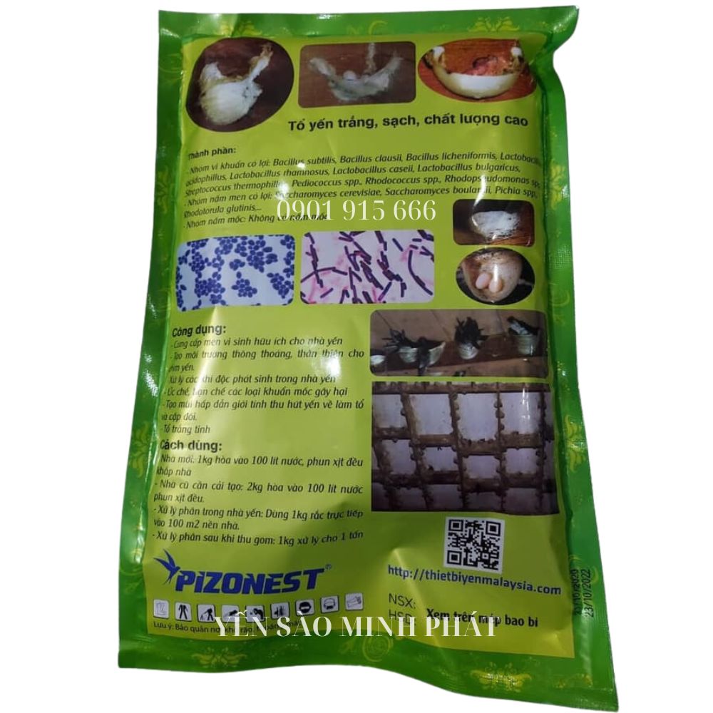 Vi Sinh Pizonest thường được dạng bột hoặc dung dịch, pha loãng rồi phun định kỳ trong nhà yến, đặc biệt ở khu vực nền, tường và sàn để duy trì hệ vi sinh cân bằng tự nhiên. Sản phẩm được sử dụng rộng rãi trong các hệ thống nuôi yến chuyên nghiệp, giúp nâng cao chất lượng không khí và hạn chế mầm bệnh, hỗ trợ đàn yến sinh trưởng ổn định, bền vững.