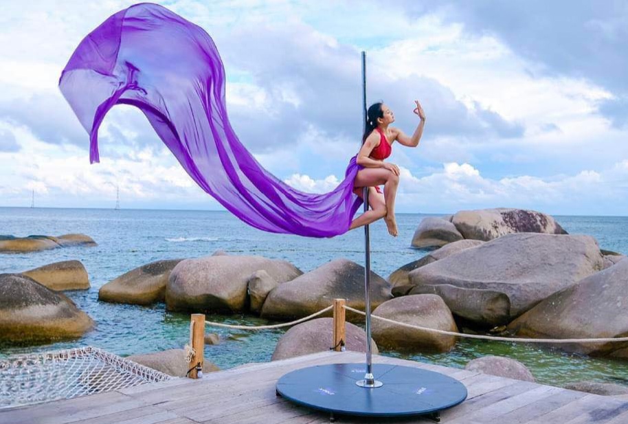 Dù đi nghỉ dưỡng vẫn không quên rèn luyện sức khỏe.