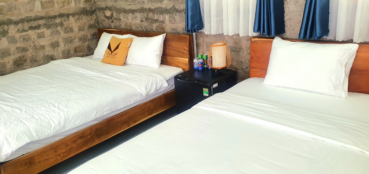 - Phòng gia đình cao cấp có giá 3.400.000 VNĐ/ đêm, dành cho 4 người lớn / 2 trẻ em. Bạn cũng có thể lựa chọn các gói ưu đãi khác khi đặt phòng trước tại Fly Up Resort.