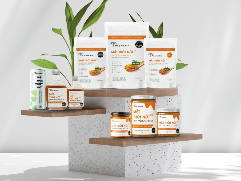 Được làm từ mật hoa cây thốt nốt (Borassus Flabellifer) mọc tự nhiên tại vùng Bảy Núi, tỉnh An Giang, Việt Nam, mật hoa thốt nốt Palmania chứa nhiều axit amin thiết yếu, khoáng chất và vitamin nhóm B, cùng chỉ số đường huyết thấp (Low GI) – tốt cho sức khỏe tim mạch, kiểm soát cân nặng và phù hợp cho người ăn kiêng.