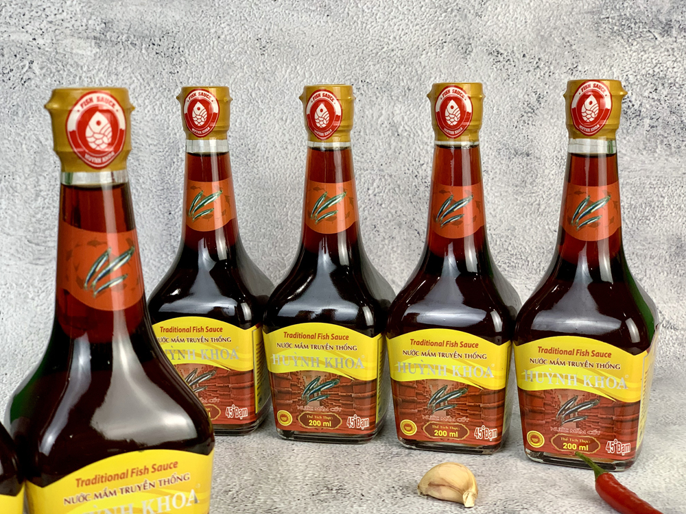 Nước Mắm Truyền Thống Cốt Nhĩ Huỳnh Khoa 45 đạm - Chai 200 ml - Hộp 6 Chai