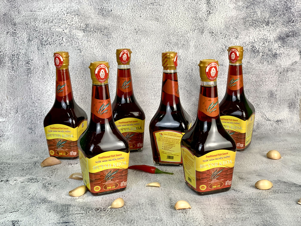 Nước Mắm Cốt Nhĩ Truyền Thống CDĐL Phú Quốc Huỳnh Khoa 40 độ đạm (Nguyên Chất) - Chai 200 ml - Hộp 6 Chai