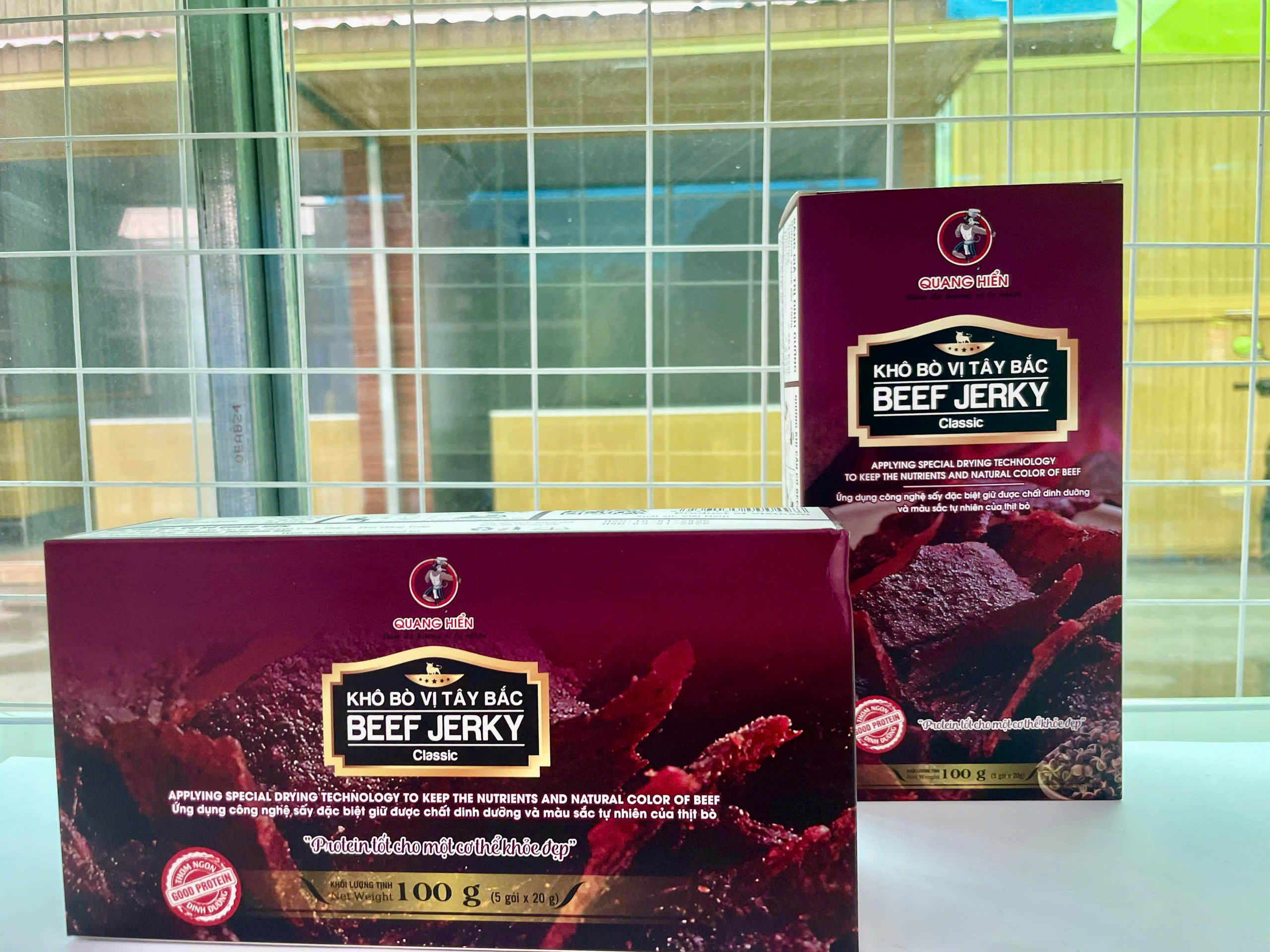 Khô Bò Vị Tây Bắc Beef Jerky (Classic) của thương hiệu Quang Hiển là sản phẩm được chế biến từ thịt bò nguyên chất, áp dụng công nghệ sấy đặc biệt giúp giữ nguyên giá trị dinh dưỡng và màu sắc tự nhiên. Với hương vị đặc trưng của vùng Tây Bắc, sản phẩm mang đến trải nghiệm ẩm thực thơm ngon, dai mềm và đậm đà gia vị