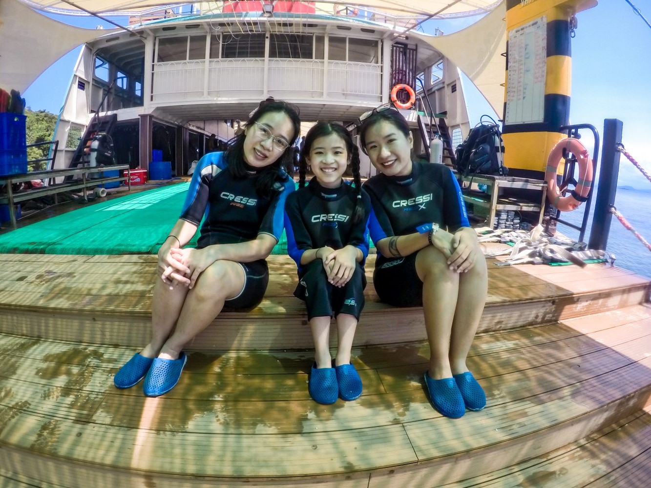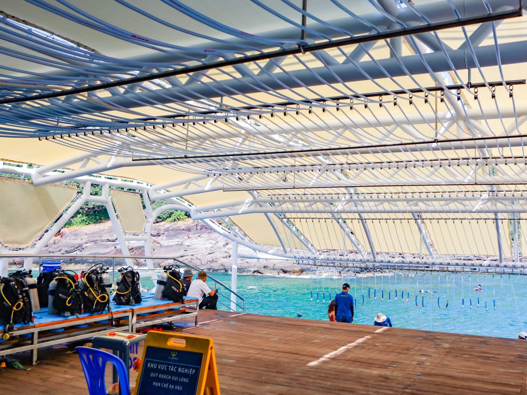 - Tầng 1 thực hiện chức năng khu dịch vụ lặn biển, đi bộ dưới đáy biển (Seawalker) được rất nhiều du khách yêu thích. Du thuyền trang bị 42 thiết bị lặn với tổng số 60 huấn luyện viên phục vụ du khách.